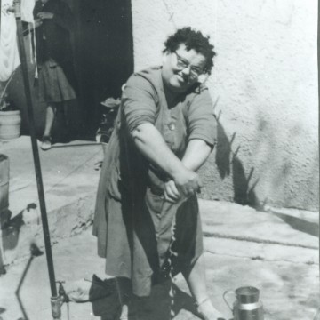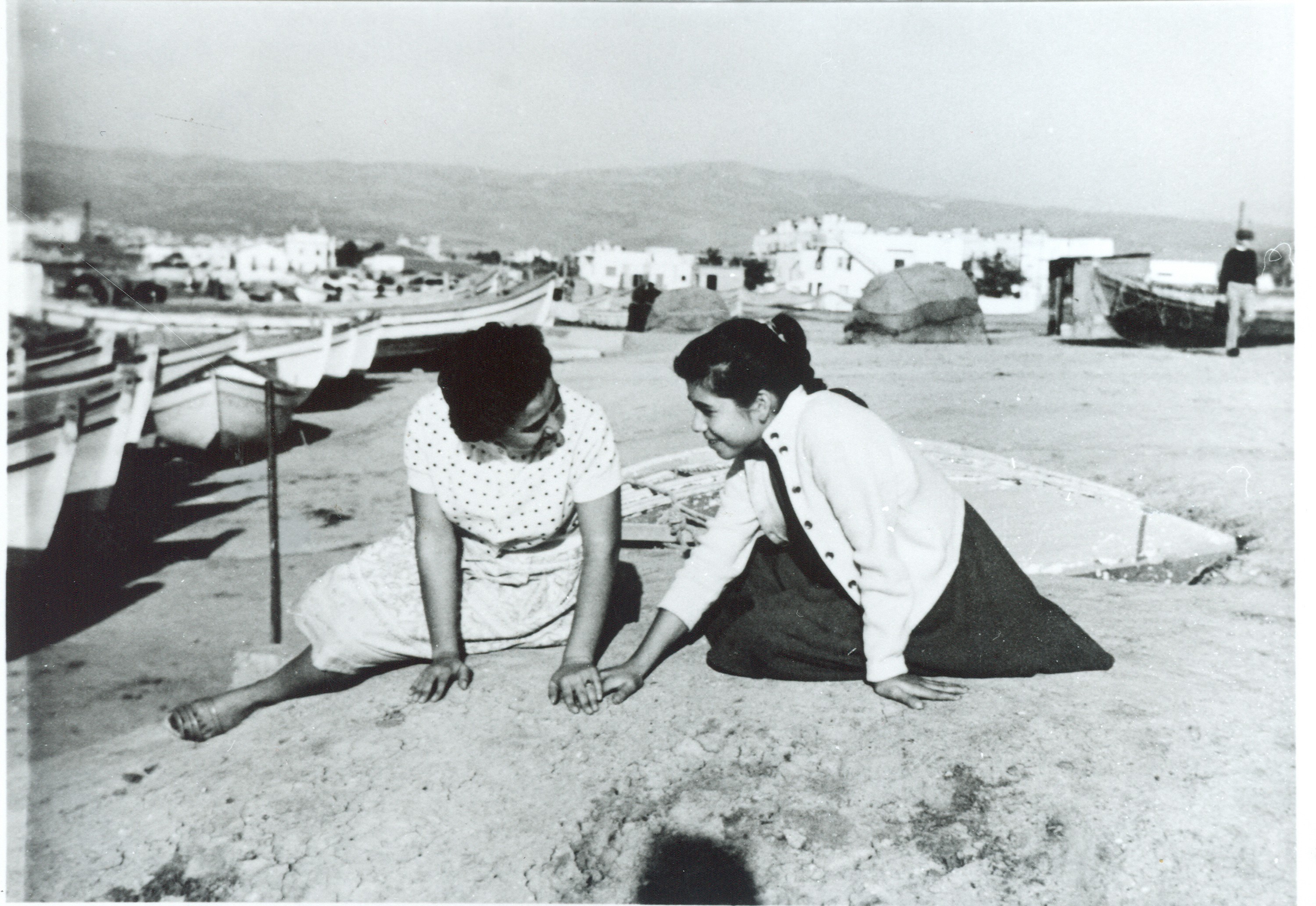 1948 Settlement: Karabournaki Kalamaria (Thessaloniki) Photographic portraits Social life At the left is Marika Viopoulou and Koula Sidiropoulou. Collection: Marika Mikromastora – Viopoulou